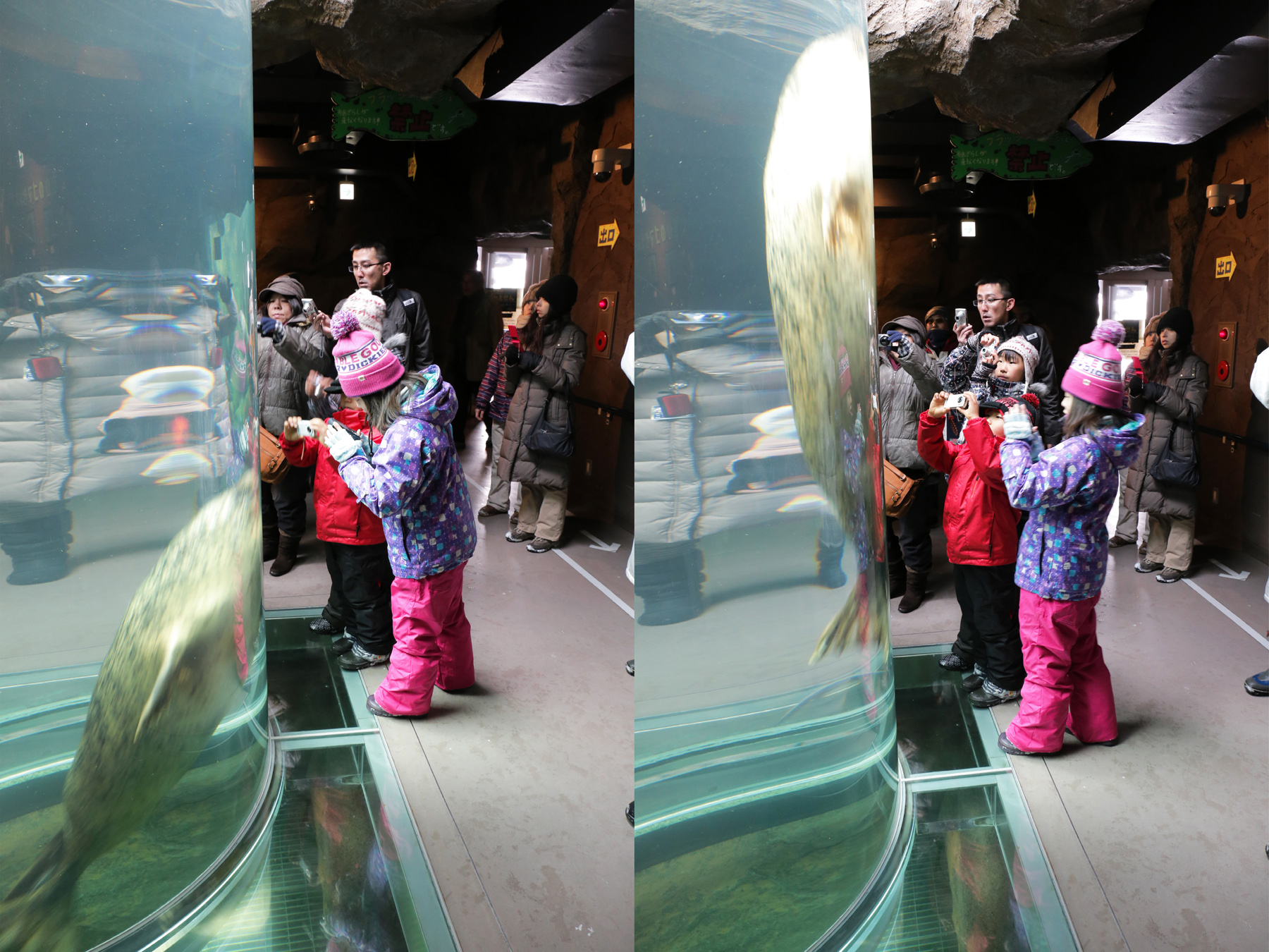 いきなりアザラシ館に潜入! うまくとれたかな?