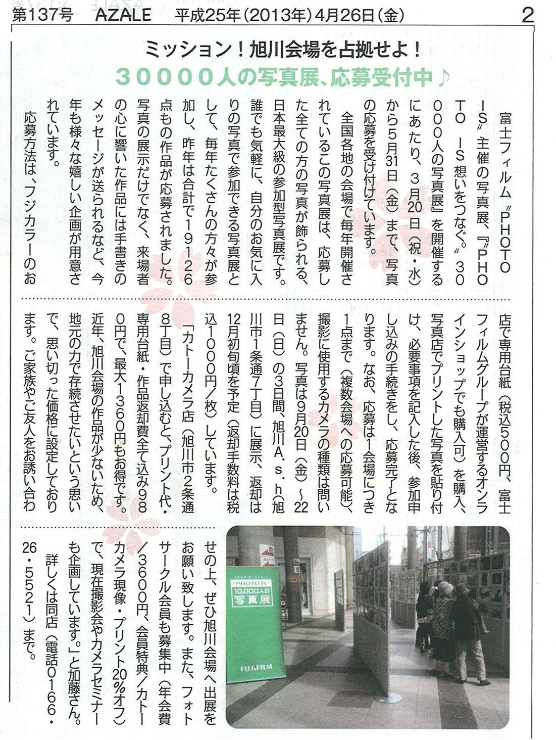 このイベントを先日4月26日発行のあざれに掲載いただきました。